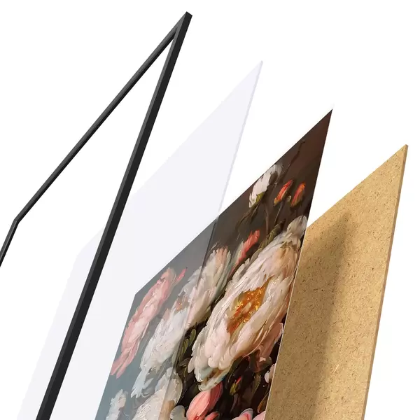 Plakāts sastāv no rāmja, pleksstikla, iespiestā attēla un skaidu plātnes pamatnes. Plakātu var uzreiz piekarināt pie sienas, pateicoties aizmugurē esošajiem stiprinājumiem.