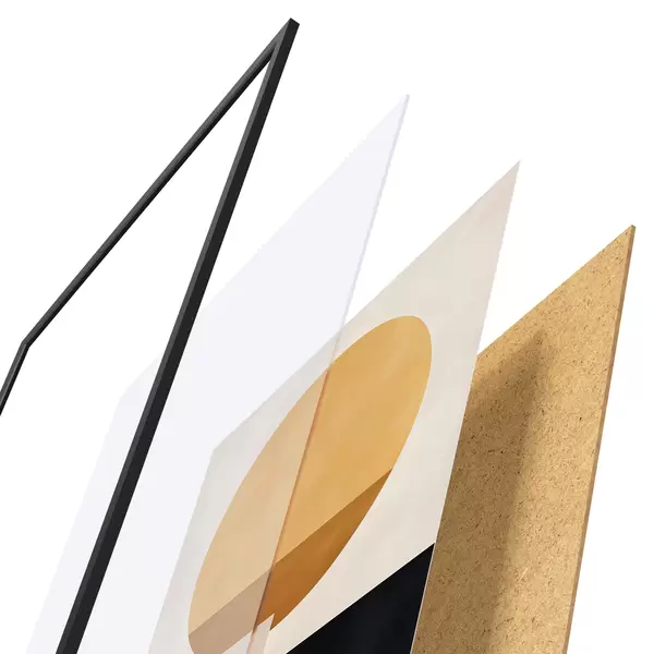 Plakāts sastāv no rāmja, pleksstikla, iespiestā attēla un skaidu plātnes pamatnes. Plakātu var uzreiz piekarināt pie sienas, pateicoties aizmugurē esošajiem stiprinājumiem.