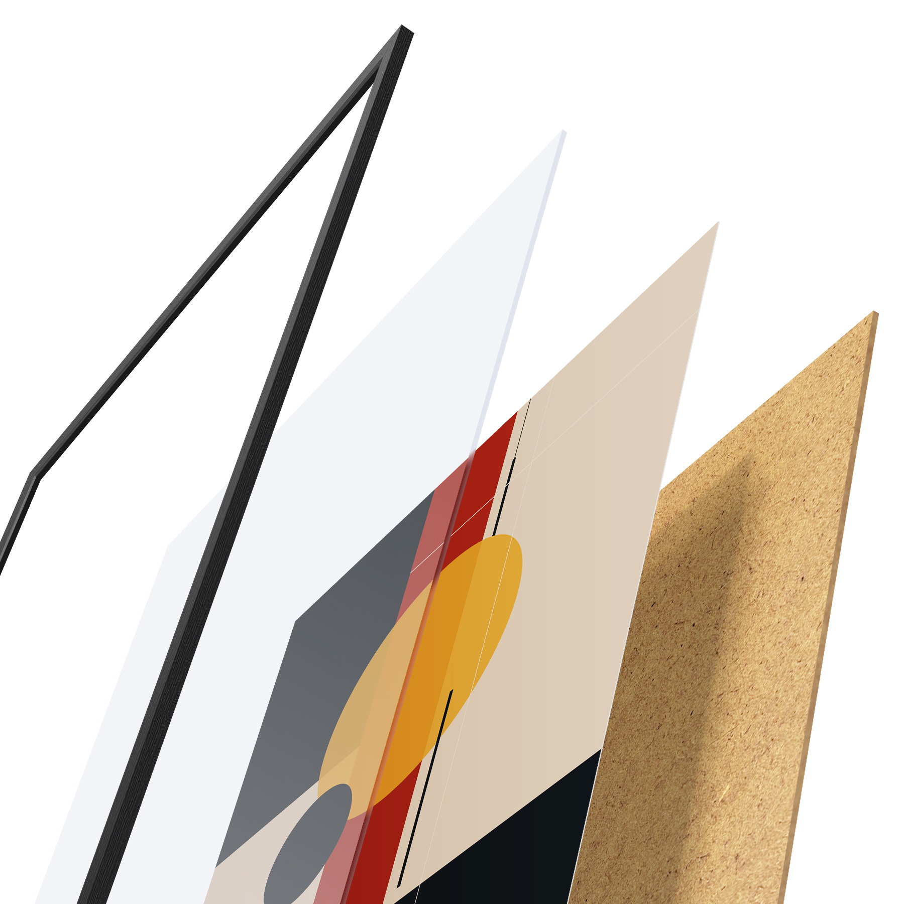 Plakāts sastāv no rāmja, pleksstikla, iespiestā attēla un skaidu plātnes pamatnes. Plakātu var uzreiz piekarināt pie sienas, pateicoties aizmugurē esošajiem stiprinājumiem.