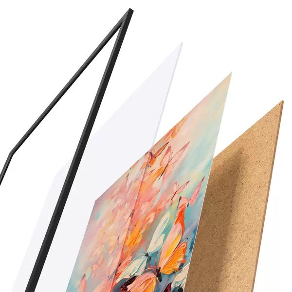 Plakāts sastāv no rāmja, pleksstikla, iespiestā attēla un skaidu plātnes pamatnes. Plakātu var uzreiz piekarināt pie sienas, pateicoties aizmugurē esošajiem stiprinājumiem.