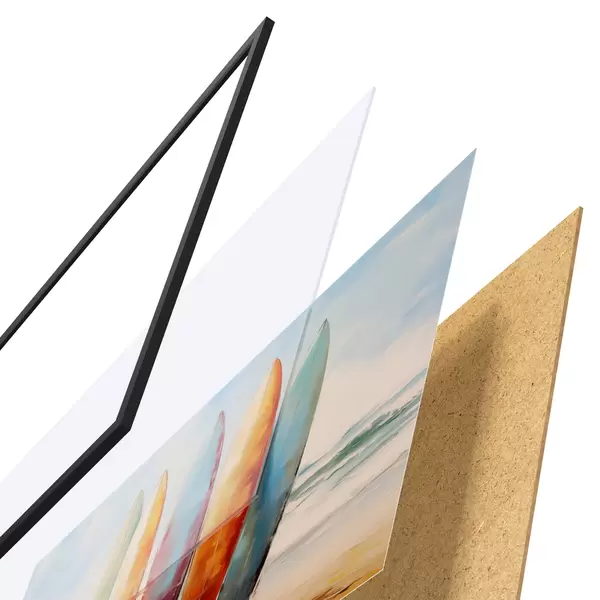 Plakāts sastāv no rāmja, pleksstikla, iespiestā attēla un skaidu plātnes pamatnes. Plakātu var uzreiz piekarināt pie sienas, pateicoties aizmugurē esošajiem stiprinājumiem.