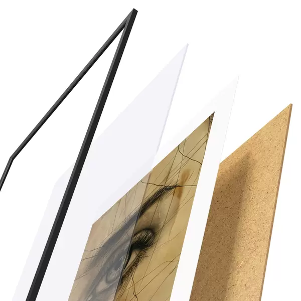 Plakāts sastāv no rāmja, pleksstikla, iespiestā attēla un skaidu plātnes pamatnes. Plakātu var uzreiz piekarināt pie sienas, pateicoties aizmugurē esošajiem stiprinājumiem.