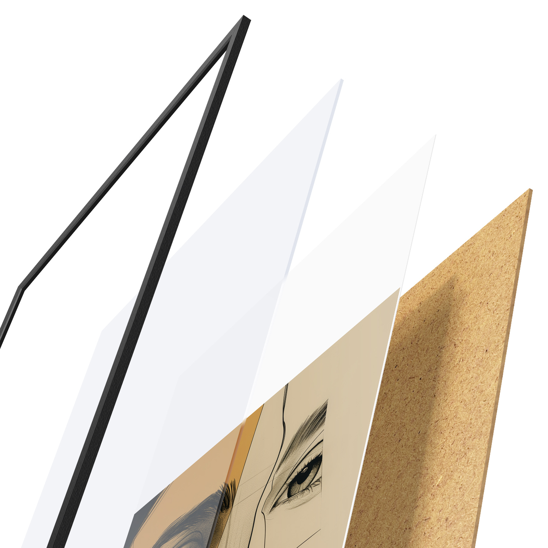 Plakāts sastāv no rāmja, pleksstikla, iespiestā attēla un skaidu plātnes pamatnes. Plakātu var uzreiz piekarināt pie sienas, pateicoties aizmugurē esošajiem stiprinājumiem.