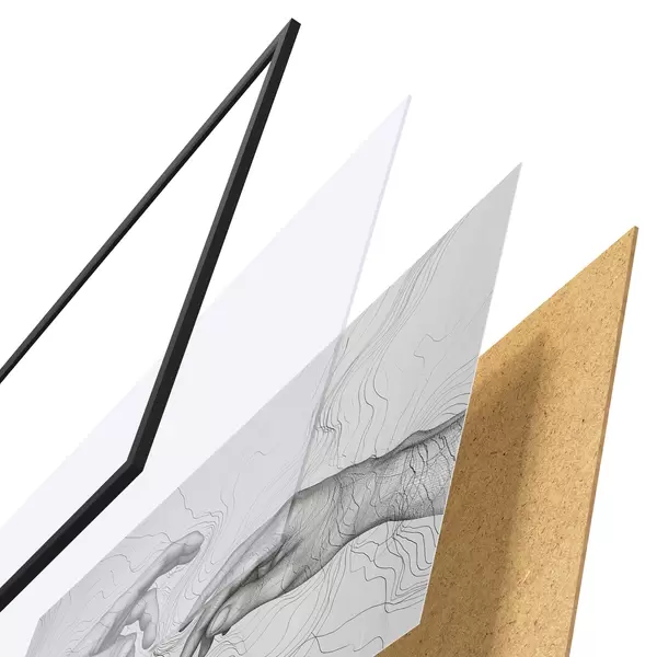 Plakāts sastāv no rāmja, pleksstikla, iespiestā attēla un skaidu plātnes pamatnes. Plakātu var uzreiz piekarināt pie sienas, pateicoties aizmugurē esošajiem stiprinājumiem.