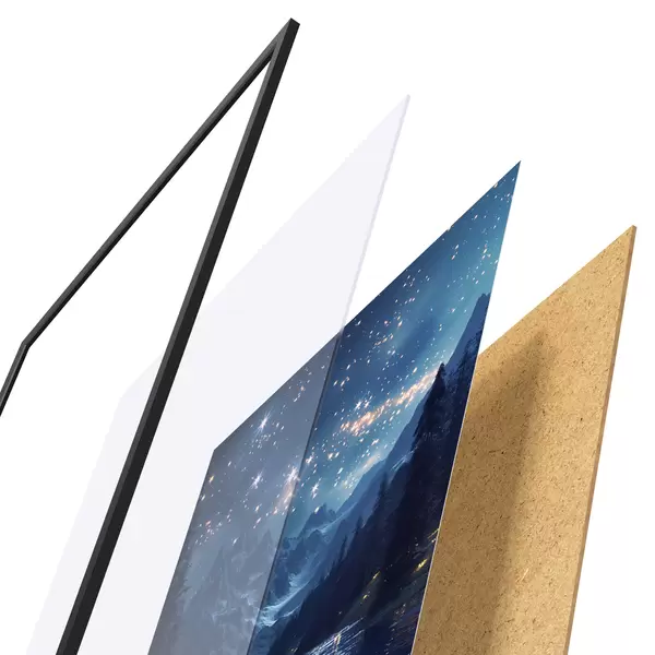 Plakāts sastāv no rāmja, pleksstikla, iespiestā attēla un skaidu plātnes pamatnes. Plakātu var uzreiz piekarināt pie sienas, pateicoties aizmugurē esošajiem stiprinājumiem.