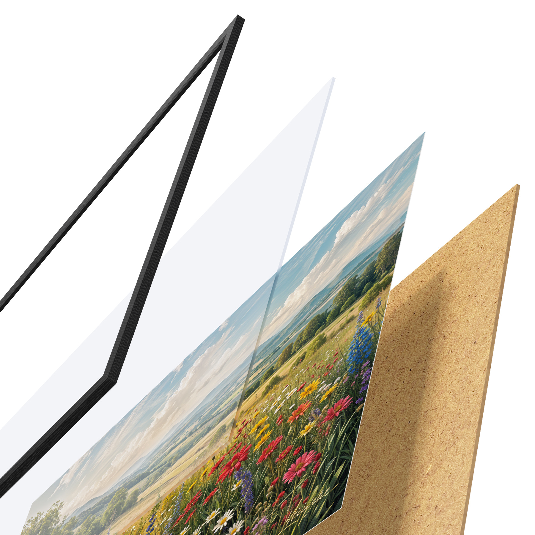 Plakāts sastāv no rāmja, pleksstikla, iespiestā attēla un skaidu plātnes pamatnes. Plakātu var uzreiz piekarināt pie sienas, pateicoties aizmugurē esošajiem stiprinājumiem.