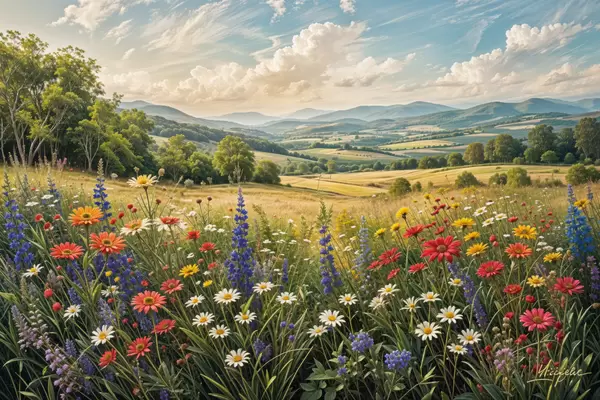 SākumlapaPlakātu katalogsPlakāti dabaPlakāts Lekna lauku ainava ar dinamisku savvaļas ziedu pļavu, kas piepildīta ar krāsainiem ziediem zem mākoņainām debesīm Nr f40018