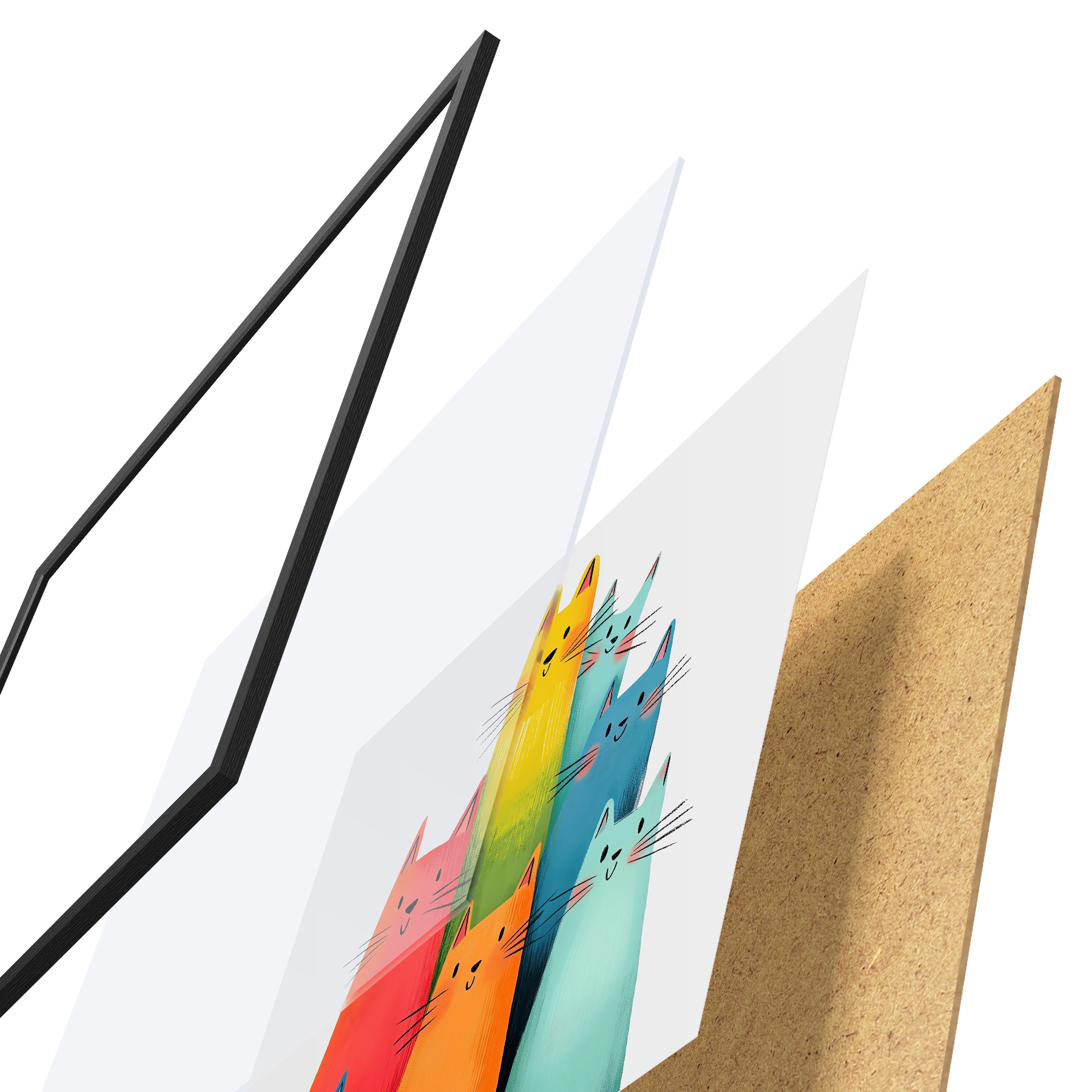 Plakāts sastāv no rāmja, pleksstikla, iespiestā attēla un skaidu plātnes pamatnes. Plakātu var uzreiz piekarināt pie sienas, pateicoties aizmugurē esošajiem stiprinājumiem.