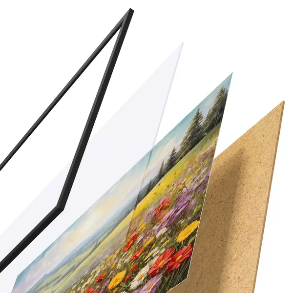 Plakāts sastāv no rāmja, pleksstikla, iespiestā attēla un skaidu plātnes pamatnes. Plakātu var uzreiz piekarināt pie sienas, pateicoties aizmugurē esošajiem stiprinājumiem.