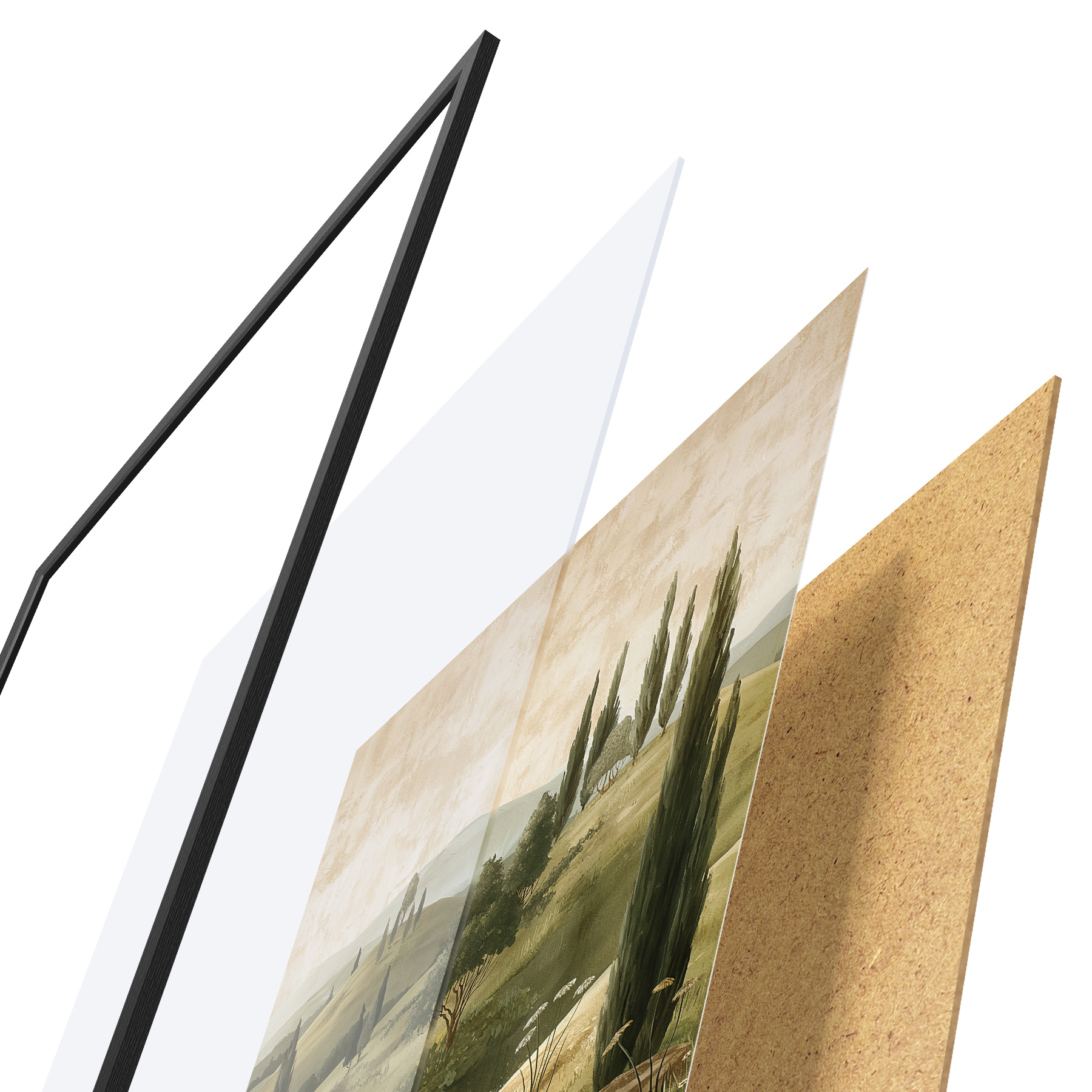 Plakāts sastāv no rāmja, pleksstikla, iespiestā attēla un skaidu plātnes pamatnes. Plakātu var uzreiz piekarināt pie sienas, pateicoties aizmugurē esošajiem stiprinājumiem.
