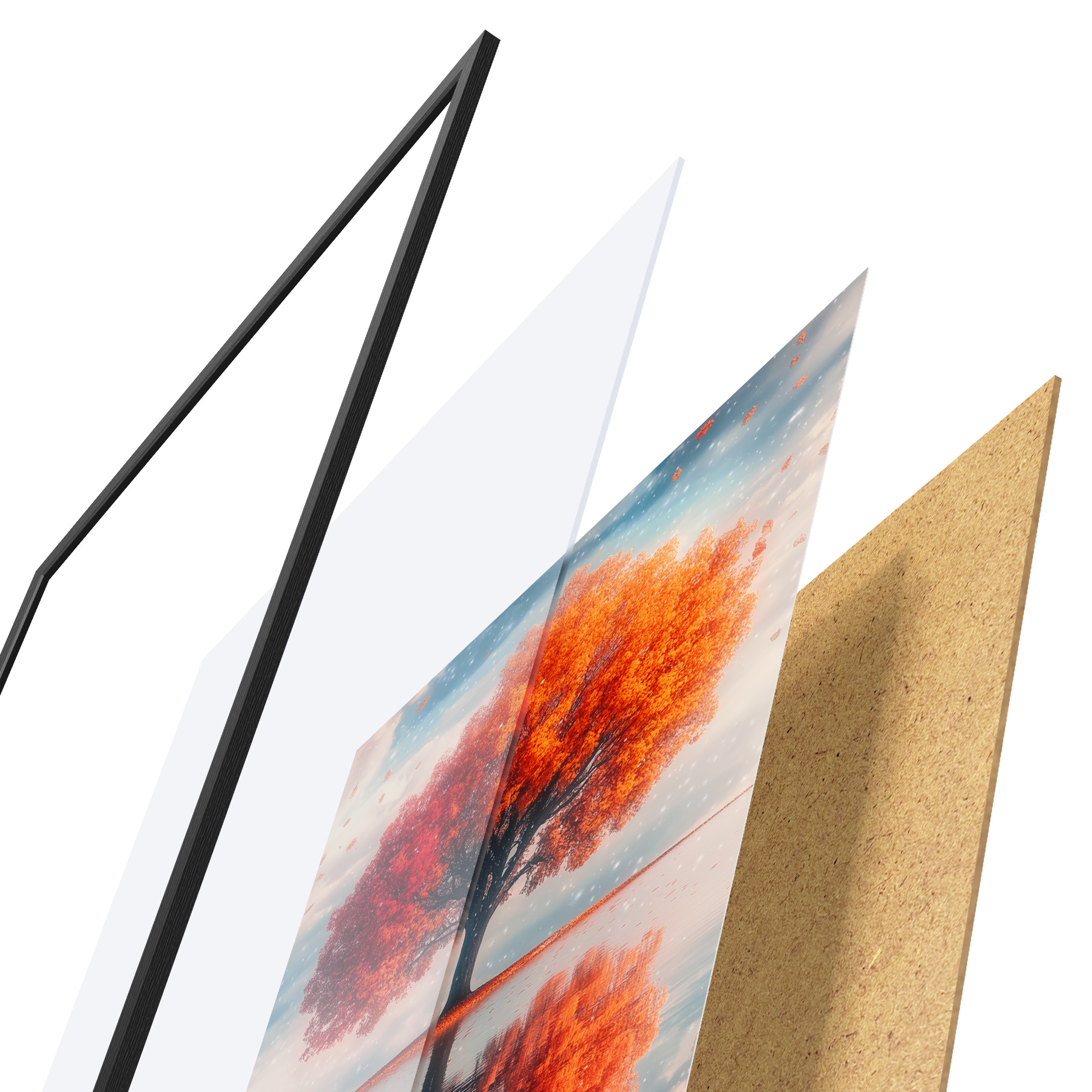 Plakāts sastāv no rāmja, pleksstikla, iespiestā attēla un skaidu plātnes pamatnes. Plakātu var uzreiz piekarināt pie sienas, pateicoties aizmugurē esošajiem stiprinājumiem.
