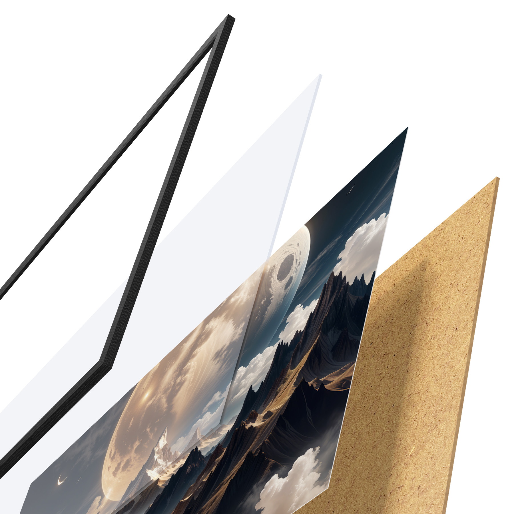 Plakāts sastāv no rāmja, pleksstikla, iespiestā attēla un skaidu plātnes pamatnes. Plakātu var uzreiz piekarināt pie sienas, pateicoties aizmugurē esošajiem stiprinājumiem.