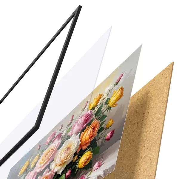 Plakāts sastāv no rāmja, pleksstikla, iespiestā attēla un skaidu plātnes pamatnes. Plakātu var uzreiz piekarināt pie sienas, pateicoties aizmugurē esošajiem stiprinājumiem.