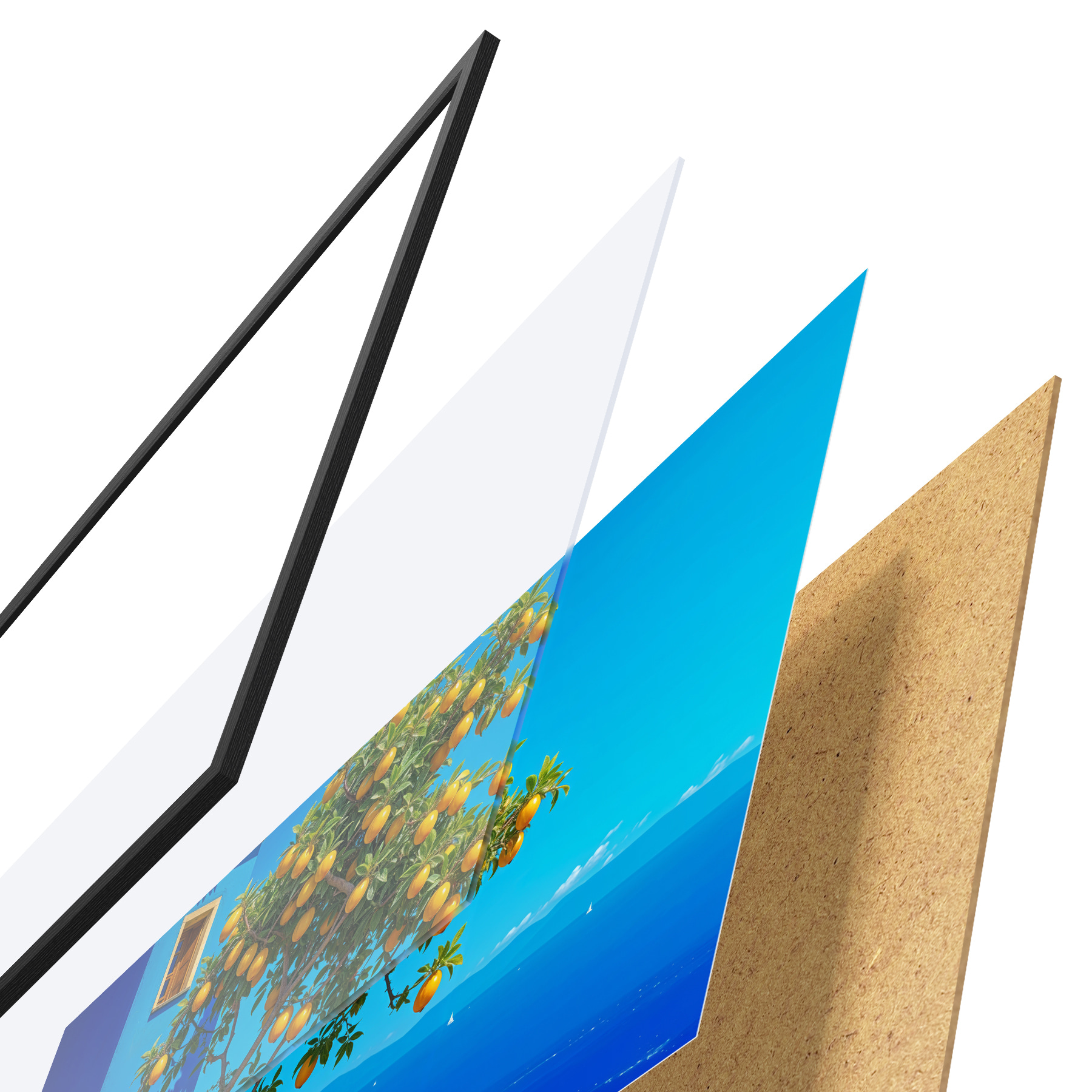 Plakāts sastāv no rāmja, pleksstikla, iespiestā attēla un skaidu plātnes pamatnes. Plakātu var uzreiz piekarināt pie sienas, pateicoties aizmugurē esošajiem stiprinājumiem.