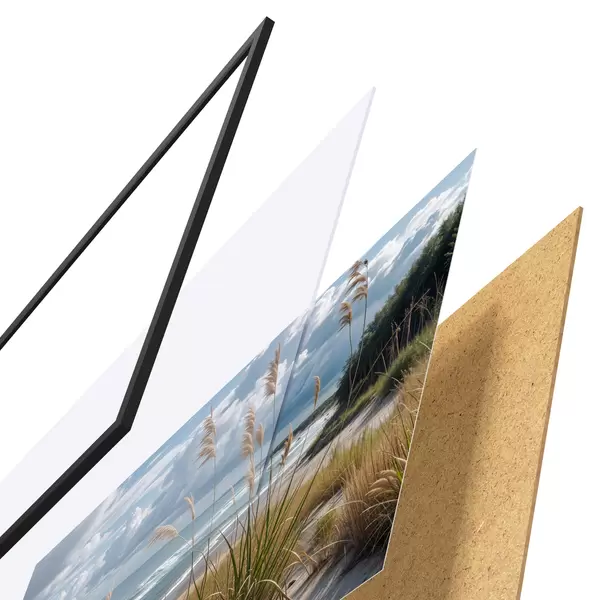 Plakāts sastāv no rāmja, pleksstikla, iespiestā attēla un skaidu plātnes pamatnes. Plakātu var uzreiz piekarināt pie sienas, pateicoties aizmugurē esošajiem stiprinājumiem.