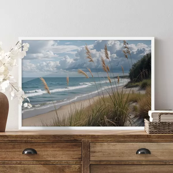 SākumlapaPlakātu katalogsPlakāti daba jūraPlakāts Gleznaina pludmale ar augstu zāli, kas šūpojas vējā, ar skatu uz okeānu ar kraukšķīgiem viļņiem un mākoņainām debesīm Nr f40161