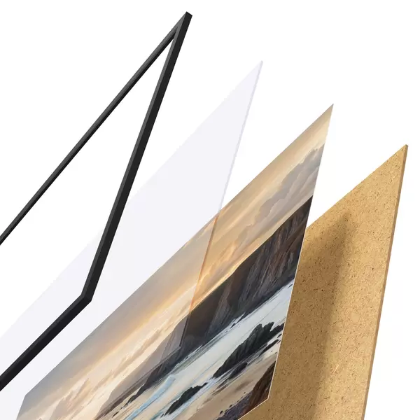 Plakāts sastāv no rāmja, pleksstikla, iespiestā attēla un skaidu plātnes pamatnes. Plakātu var uzreiz piekarināt pie sienas, pateicoties aizmugurē esošajiem stiprinājumiem.