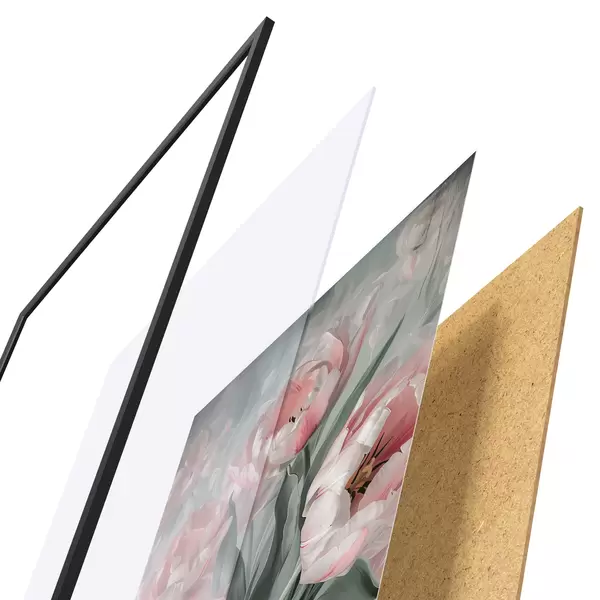 Plakāts sastāv no rāmja, pleksstikla, iespiestā attēla un skaidu plātnes pamatnes. Plakātu var uzreiz piekarināt pie sienas, pateicoties aizmugurē esošajiem stiprinājumiem.