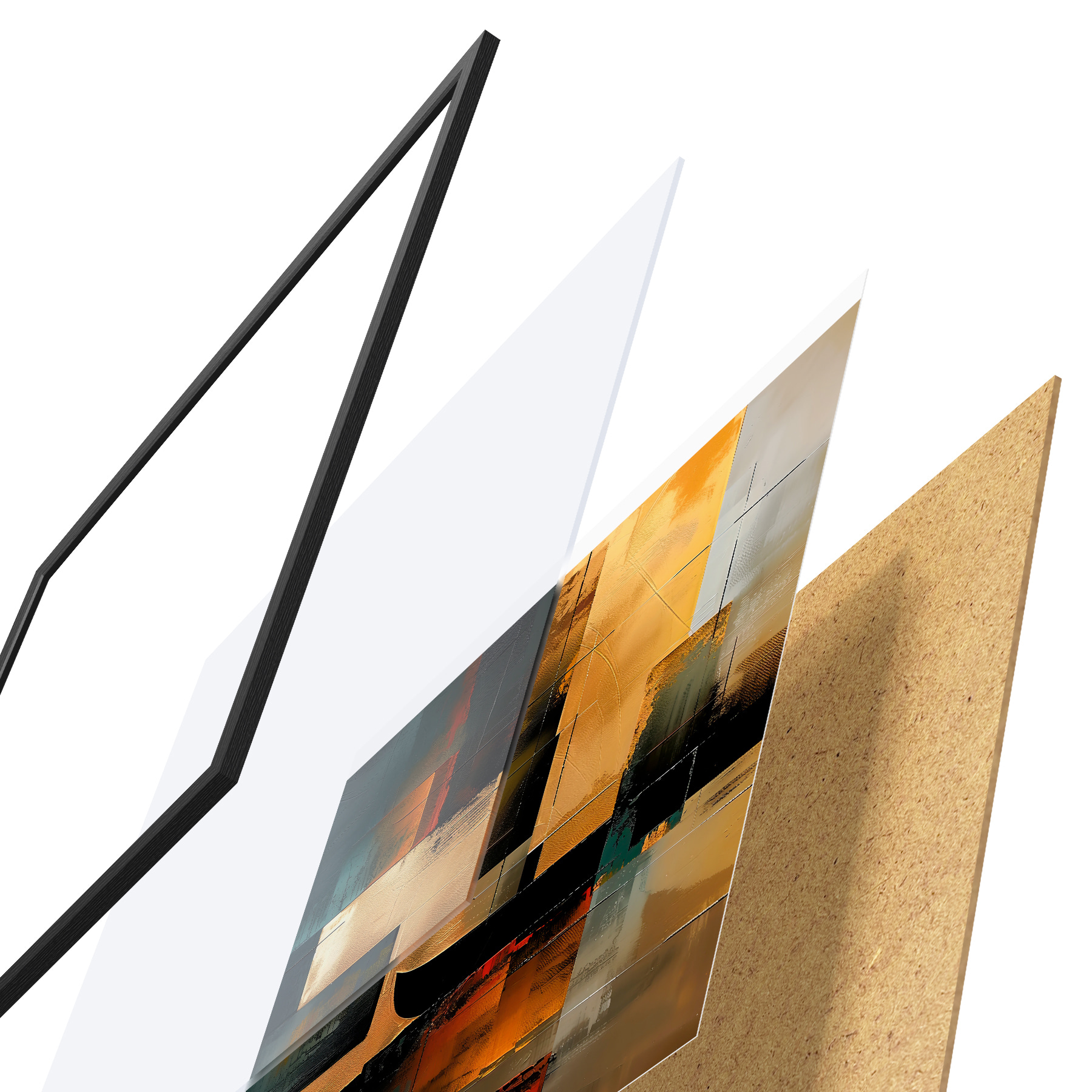 Plakāts sastāv no rāmja, pleksstikla, iespiestā attēla un skaidu plātnes pamatnes. Plakātu var uzreiz piekarināt pie sienas, pateicoties aizmugurē esošajiem stiprinājumiem.