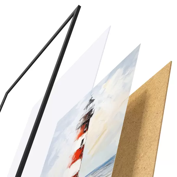 Plakāts sastāv no rāmja, pleksstikla, iespiestā attēla un skaidu plātnes pamatnes. Plakātu var uzreiz piekarināt pie sienas, pateicoties aizmugurē esošajiem stiprinājumiem.