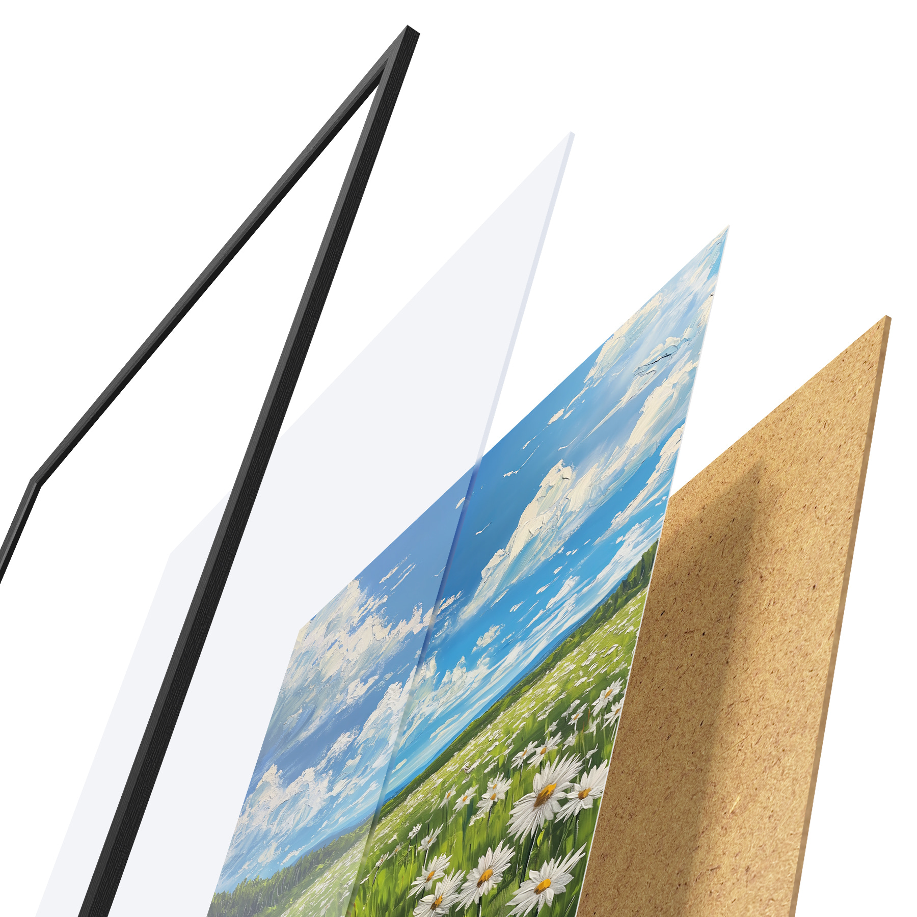 Plakāts sastāv no rāmja, pleksstikla, iespiestā attēla un skaidu plātnes pamatnes. Plakātu var uzreiz piekarināt pie sienas, pateicoties aizmugurē esošajiem stiprinājumiem.