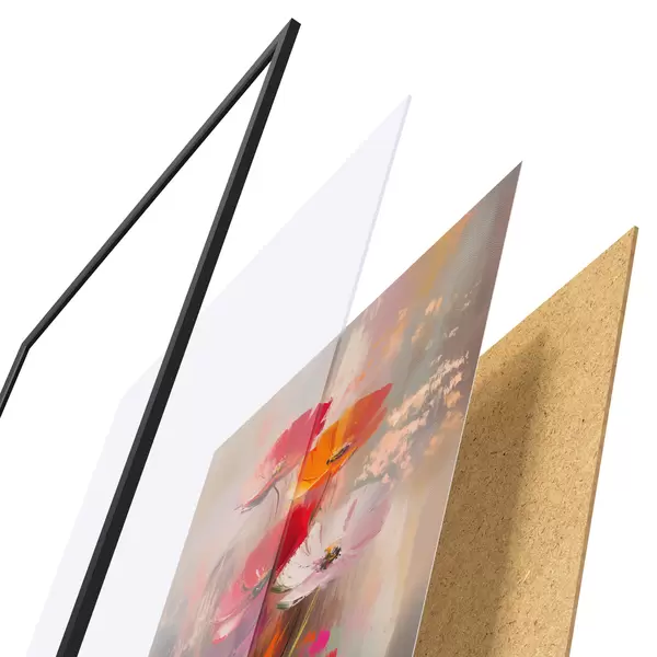 Plakāts sastāv no rāmja, pleksstikla, iespiestā attēla un skaidu plātnes pamatnes. Plakātu var uzreiz piekarināt pie sienas, pateicoties aizmugurē esošajiem stiprinājumiem.