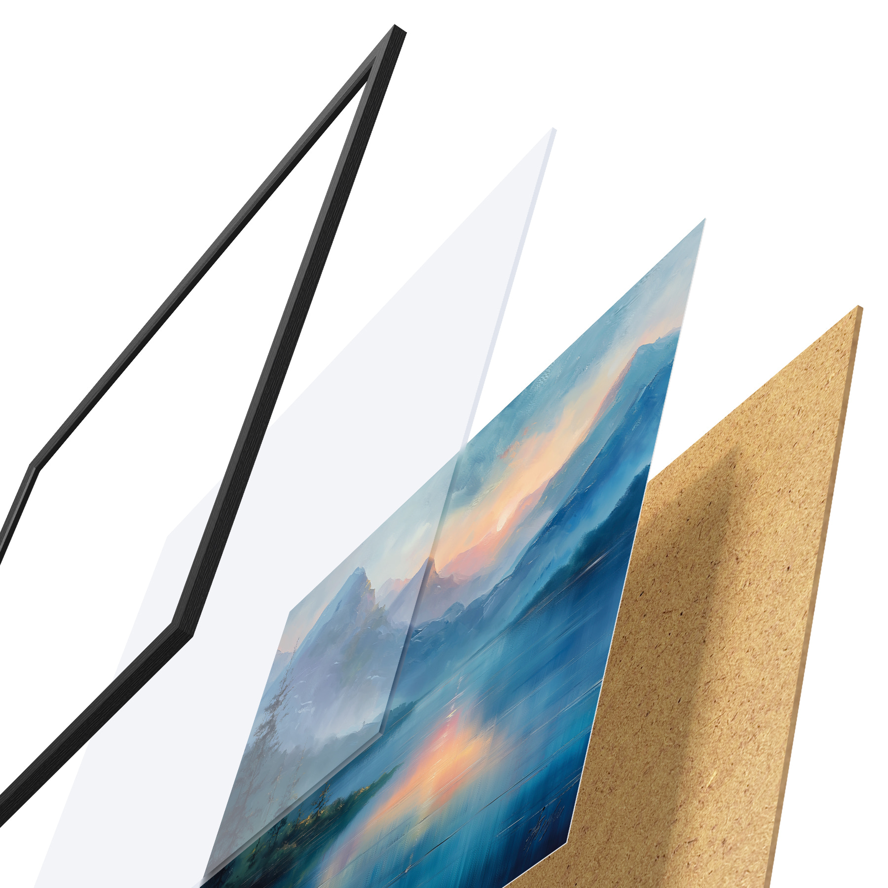 Plakāts sastāv no rāmja, pleksstikla, iespiestā attēla un skaidu plātnes pamatnes. Plakātu var uzreiz piekarināt pie sienas, pateicoties aizmugurē esošajiem stiprinājumiem.