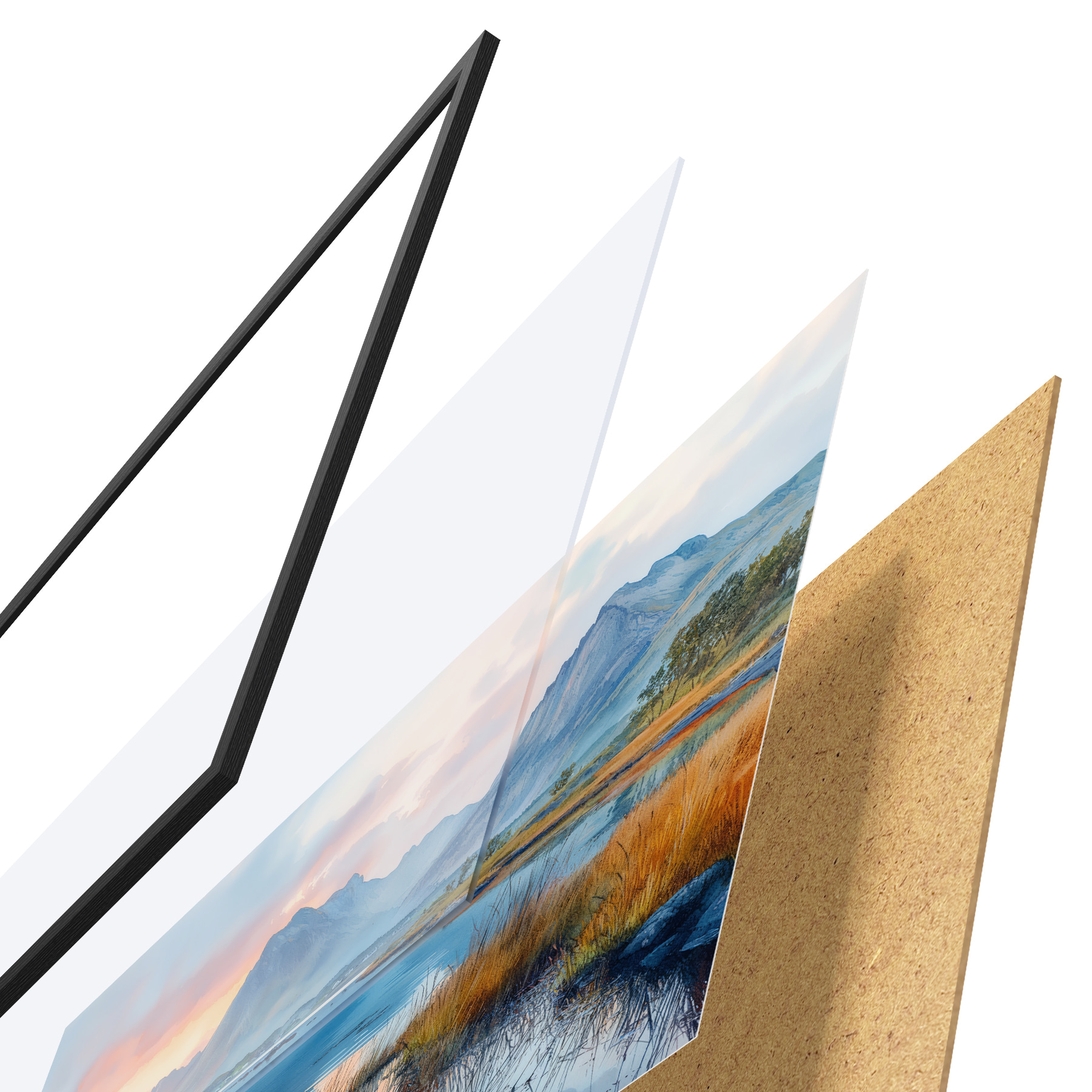 Plakāts sastāv no rāmja, pleksstikla, iespiestā attēla un skaidu plātnes pamatnes. Plakātu var uzreiz piekarināt pie sienas, pateicoties aizmugurē esošajiem stiprinājumiem.