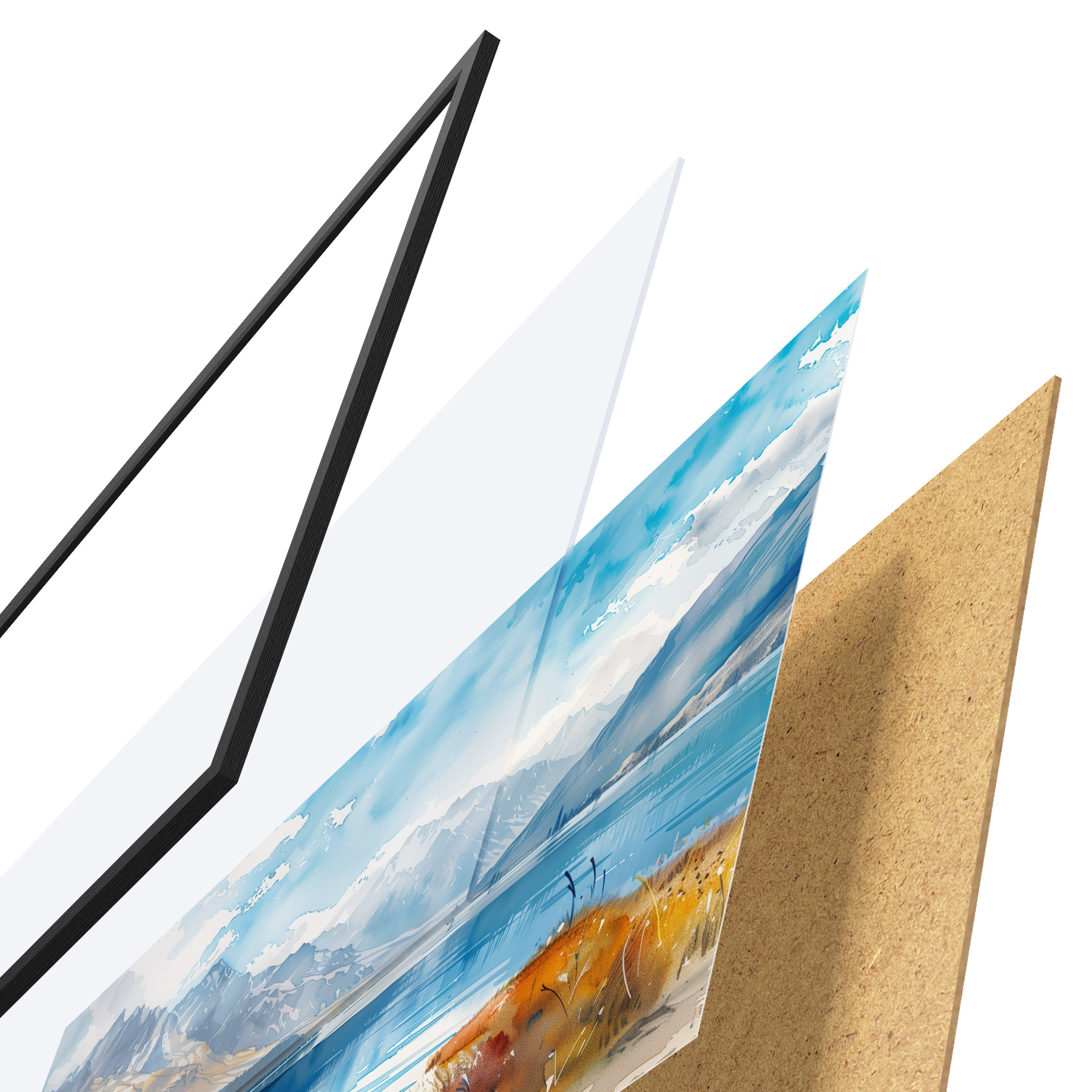 Plakāts sastāv no rāmja, pleksstikla, iespiestā attēla un skaidu plātnes pamatnes. Plakātu var uzreiz piekarināt pie sienas, pateicoties aizmugurē esošajiem stiprinājumiem.