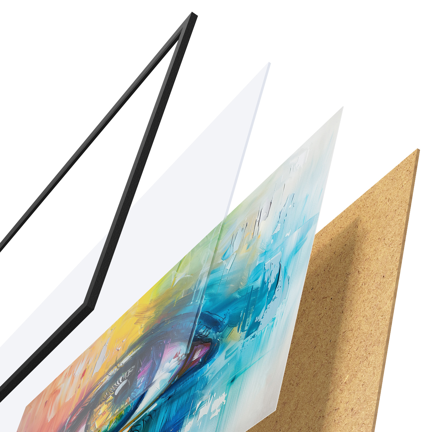 Plakāts sastāv no rāmja, pleksstikla, iespiestā attēla un skaidu plātnes pamatnes. Plakātu var uzreiz piekarināt pie sienas, pateicoties aizmugurē esošajiem stiprinājumiem.