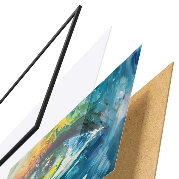 Plakāts sastāv no rāmja, pleksstikla, iespiestā attēla un skaidu plātnes pamatnes. Plakātu var uzreiz piekarināt pie sienas, pateicoties aizmugurē esošajiem stiprinājumiem.