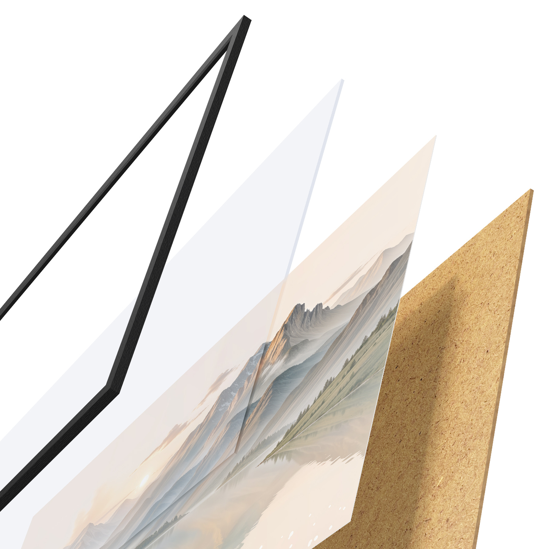 Plakāts sastāv no rāmja, pleksstikla, iespiestā attēla un skaidu plātnes pamatnes. Plakātu var uzreiz piekarināt pie sienas, pateicoties aizmugurē esošajiem stiprinājumiem.