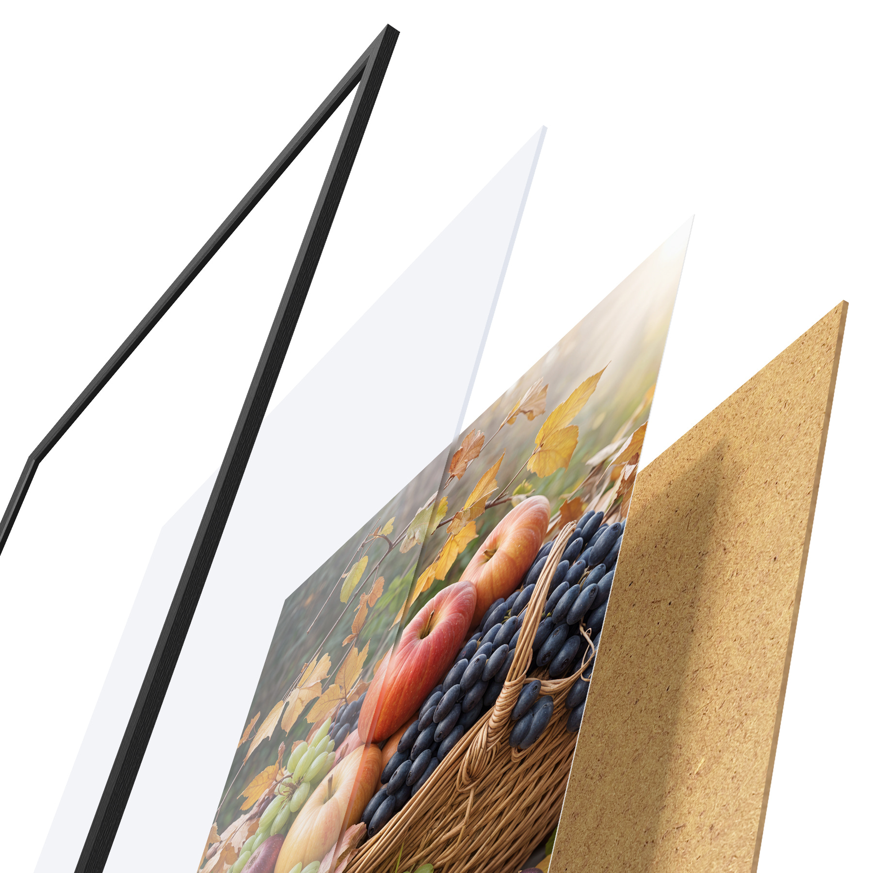 Plakāts sastāv no rāmja, pleksstikla, iespiestā attēla un skaidu plātnes pamatnes. Plakātu var uzreiz piekarināt pie sienas, pateicoties aizmugurē esošajiem stiprinājumiem.