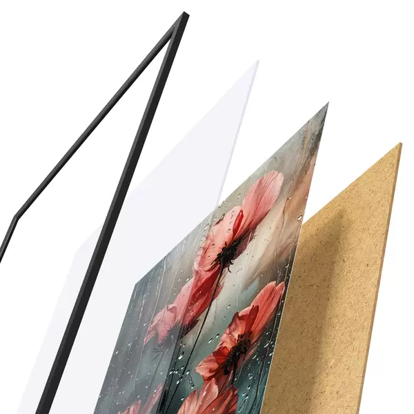 Plakāts sastāv no rāmja, pleksstikla, iespiestā attēla un skaidu plātnes pamatnes. Plakātu var uzreiz piekarināt pie sienas, pateicoties aizmugurē esošajiem stiprinājumiem.