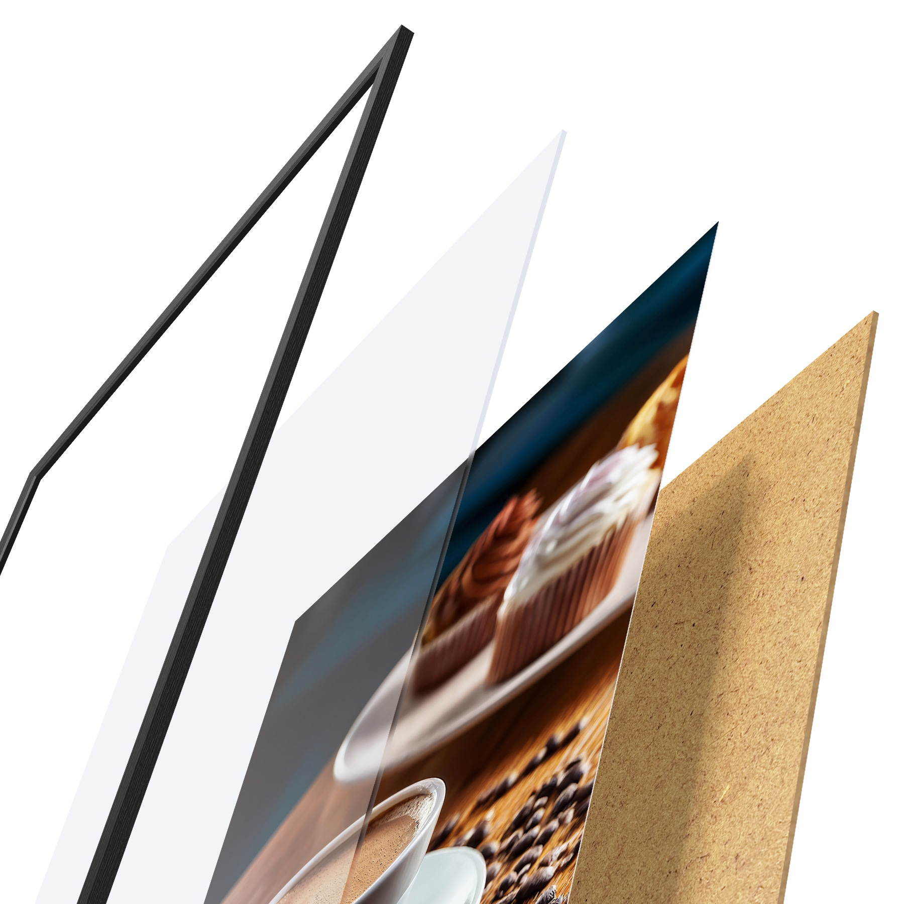 Plakāts sastāv no rāmja, pleksstikla, iespiestā attēla un skaidu plātnes pamatnes. Plakātu var uzreiz piekarināt pie sienas, pateicoties aizmugurē esošajiem stiprinājumiem.