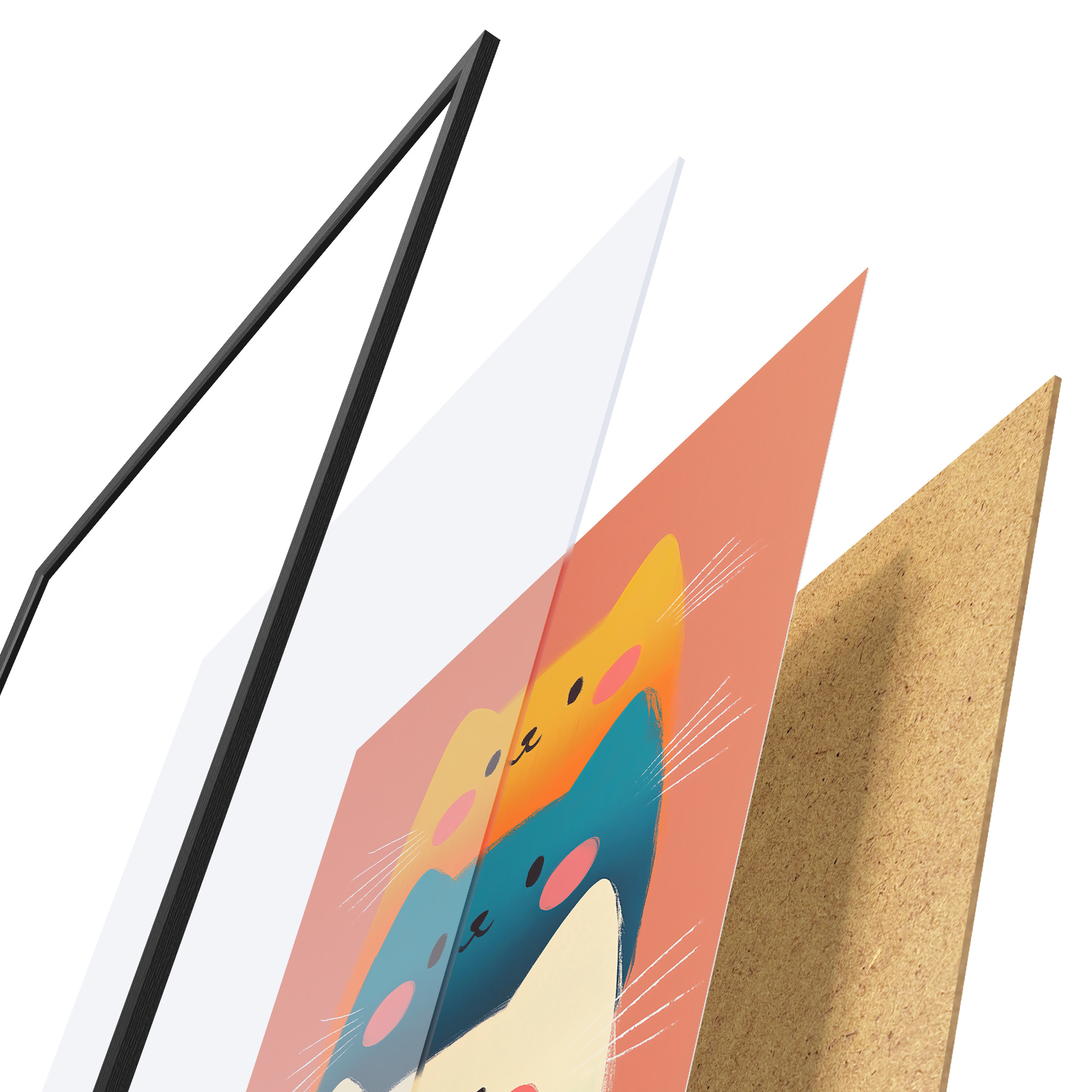 Plakāts sastāv no rāmja, pleksstikla, iespiestā attēla un skaidu plātnes pamatnes. Plakātu var uzreiz piekarināt pie sienas, pateicoties aizmugurē esošajiem stiprinājumiem.