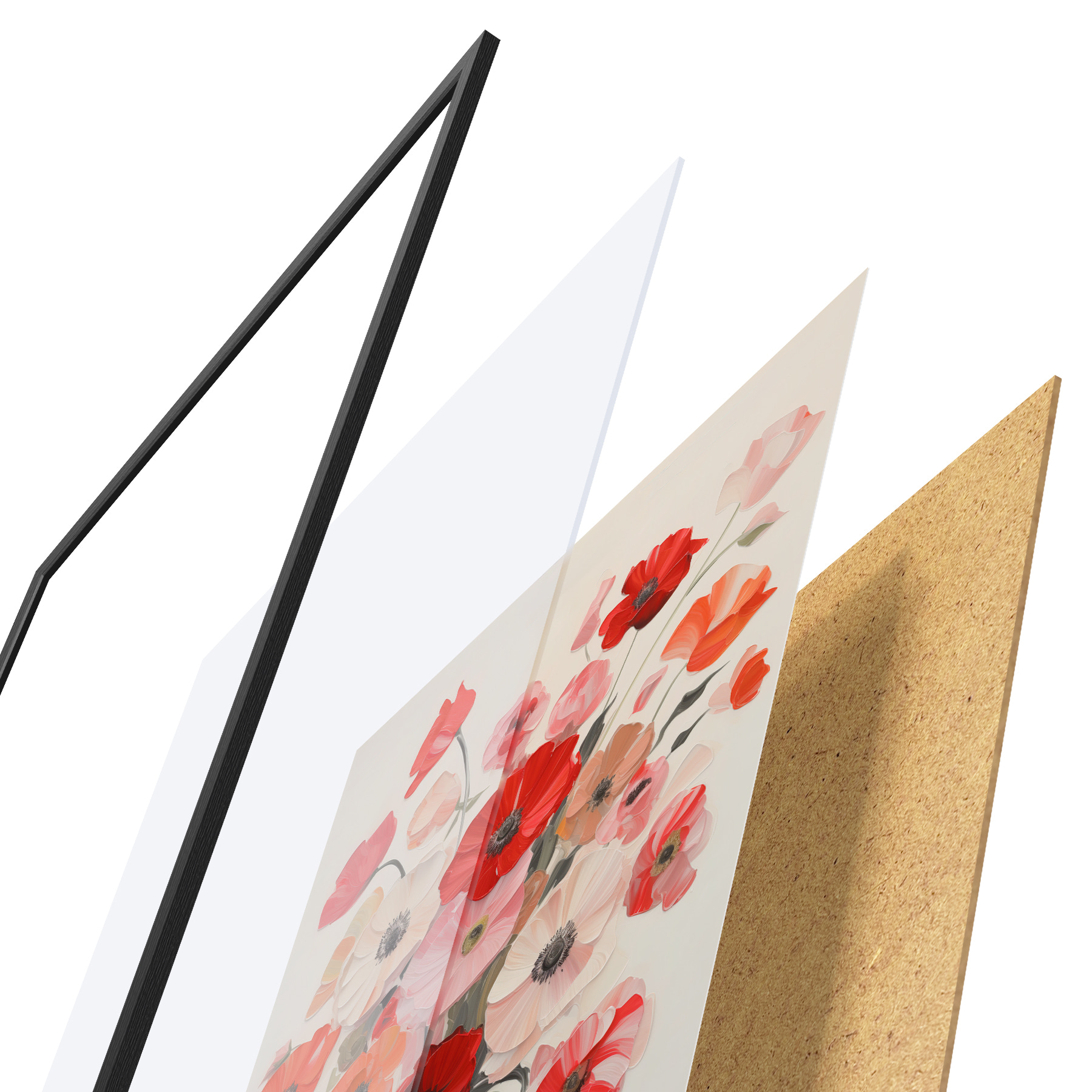 Plakāts sastāv no rāmja, pleksstikla, iespiestā attēla un skaidu plātnes pamatnes. Plakātu var uzreiz piekarināt pie sienas, pateicoties aizmugurē esošajiem stiprinājumiem.