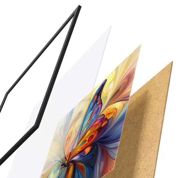 Plakāts sastāv no rāmja, pleksstikla, iespiestā attēla un skaidu plātnes pamatnes. Plakātu var uzreiz piekarināt pie sienas, pateicoties aizmugurē esošajiem stiprinājumiem.