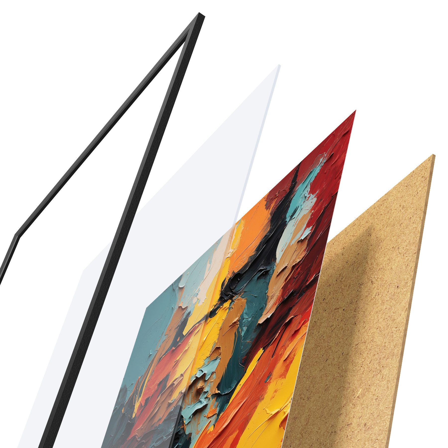 Plakāts sastāv no rāmja, pleksstikla, iespiestā attēla un skaidu plātnes pamatnes. Plakātu var uzreiz piekarināt pie sienas, pateicoties aizmugurē esošajiem stiprinājumiem.