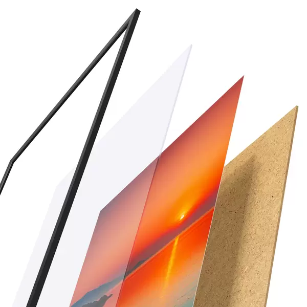 Plakāts sastāv no rāmja, pleksstikla, iespiestā attēla un skaidu plātnes pamatnes. Plakātu var uzreiz piekarināt pie sienas, pateicoties aizmugurē esošajiem stiprinājumiem.