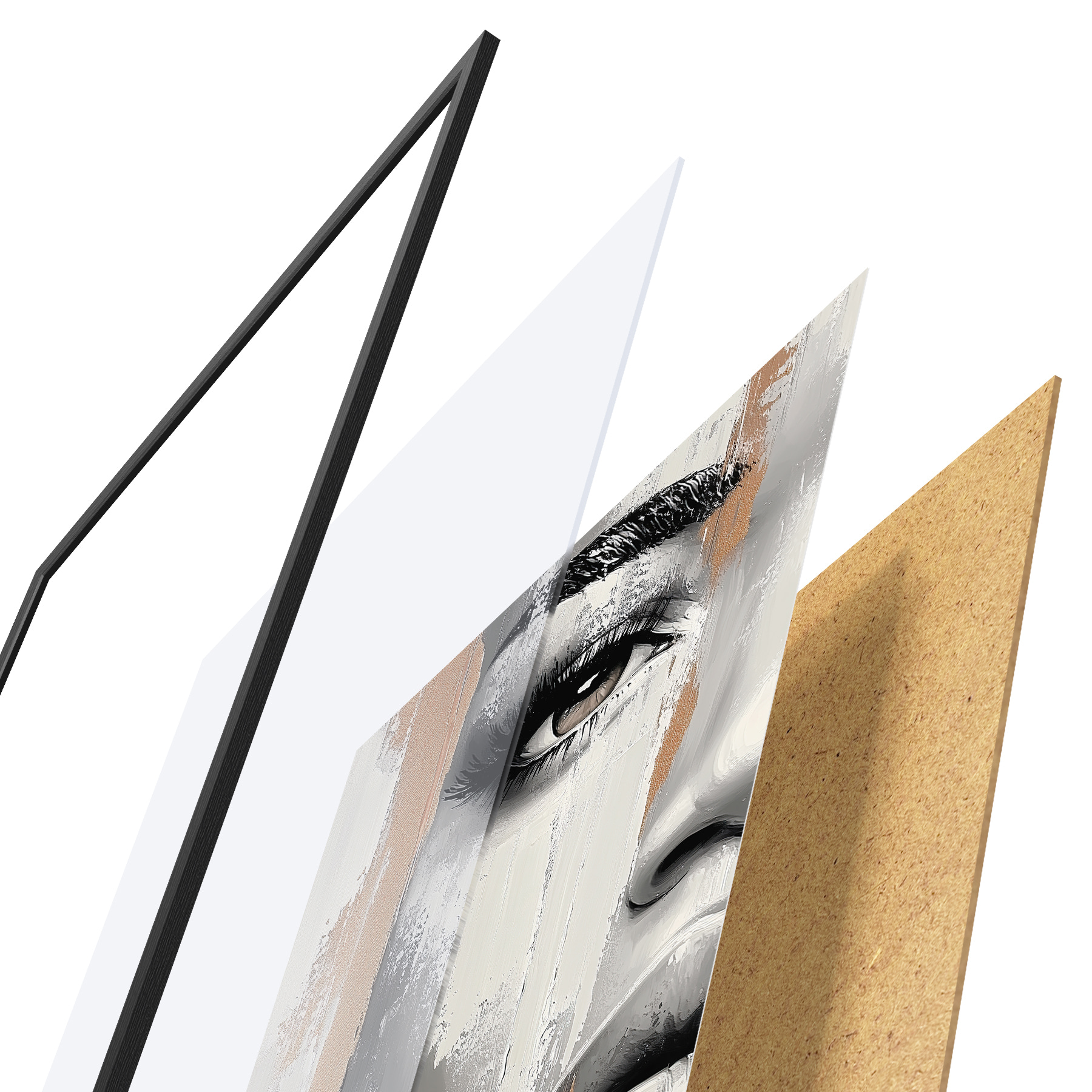 Plakāts sastāv no rāmja, pleksstikla, iespiestā attēla un skaidu plātnes pamatnes. Plakātu var uzreiz piekarināt pie sienas, pateicoties aizmugurē esošajiem stiprinājumiem.