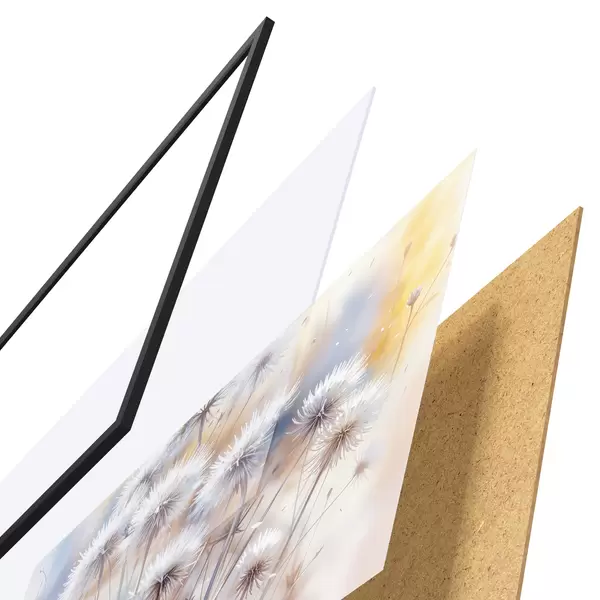 Plakāts sastāv no rāmja, pleksstikla, iespiestā attēla un skaidu plātnes pamatnes. Plakātu var uzreiz piekarināt pie sienas, pateicoties aizmugurē esošajiem stiprinājumiem.
