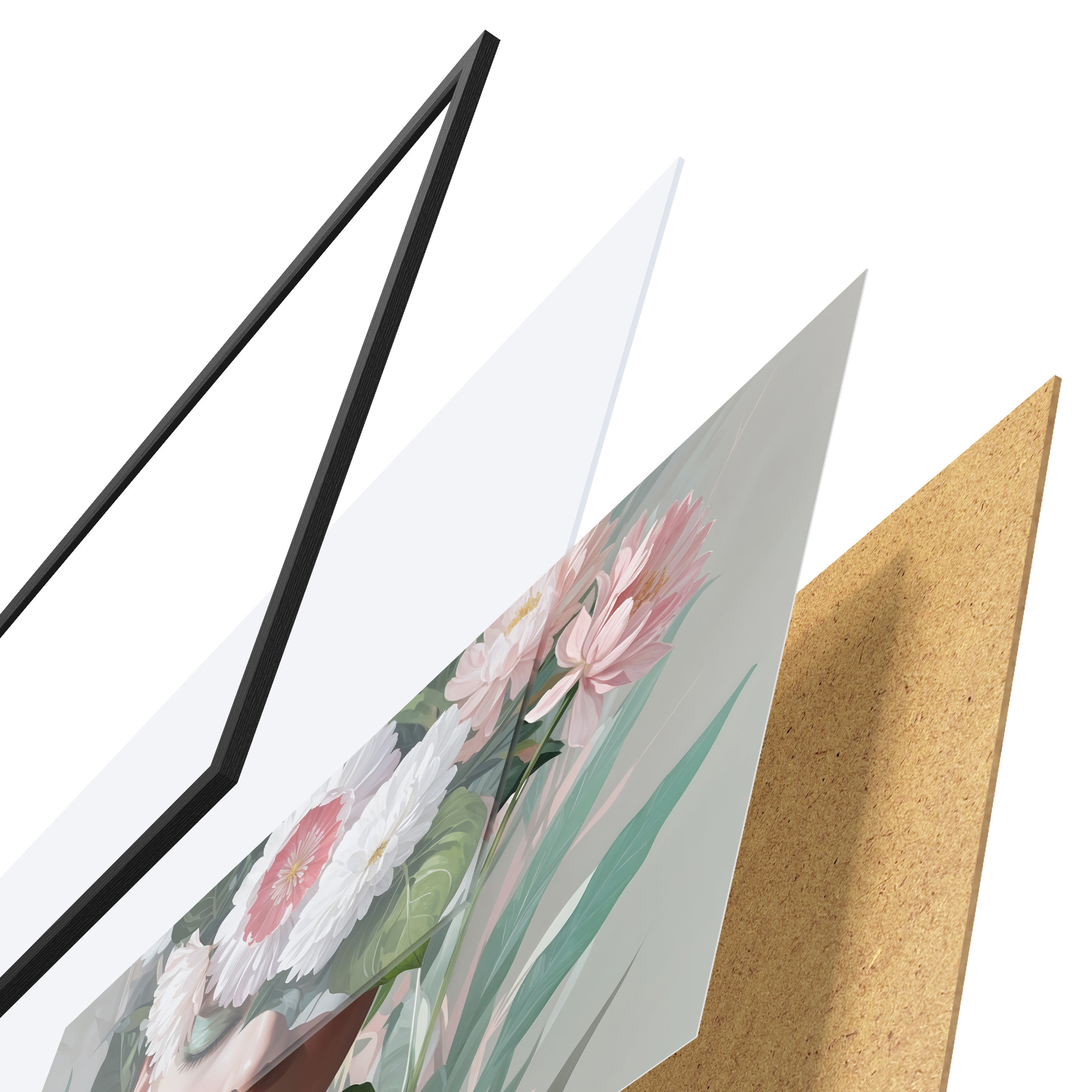 Plakāts sastāv no rāmja, pleksstikla, iespiestā attēla un skaidu plātnes pamatnes. Plakātu var uzreiz piekarināt pie sienas, pateicoties aizmugurē esošajiem stiprinājumiem.