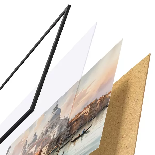 Plakāts sastāv no rāmja, pleksstikla, iespiestā attēla un skaidu plātnes pamatnes. Plakātu var uzreiz piekarināt pie sienas, pateicoties aizmugurē esošajiem stiprinājumiem.