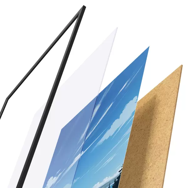 Plakāts sastāv no rāmja, pleksstikla, iespiestā attēla un skaidu plātnes pamatnes. Plakātu var uzreiz piekarināt pie sienas, pateicoties aizmugurē esošajiem stiprinājumiem.
