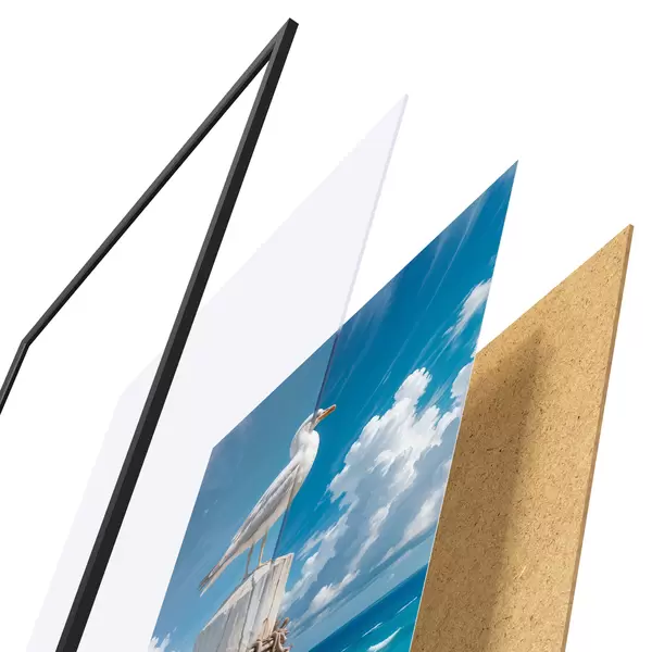 Plakāts sastāv no rāmja, pleksstikla, iespiestā attēla un skaidu plātnes pamatnes. Plakātu var uzreiz piekarināt pie sienas, pateicoties aizmugurē esošajiem stiprinājumiem.