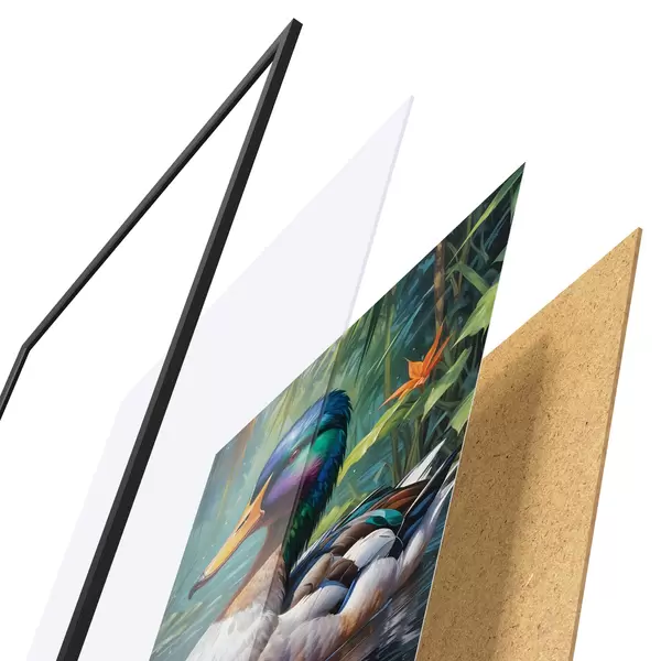 Plakāts sastāv no rāmja, pleksstikla, iespiestā attēla un skaidu plātnes pamatnes. Plakātu var uzreiz piekarināt pie sienas, pateicoties aizmugurē esošajiem stiprinājumiem.