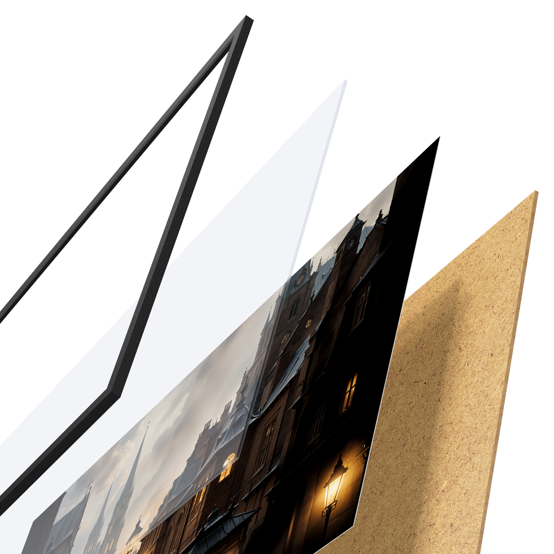 Plakāts sastāv no rāmja, pleksstikla, iespiestā attēla un skaidu plātnes pamatnes. Plakātu var uzreiz piekarināt pie sienas, pateicoties aizmugurē esošajiem stiprinājumiem.