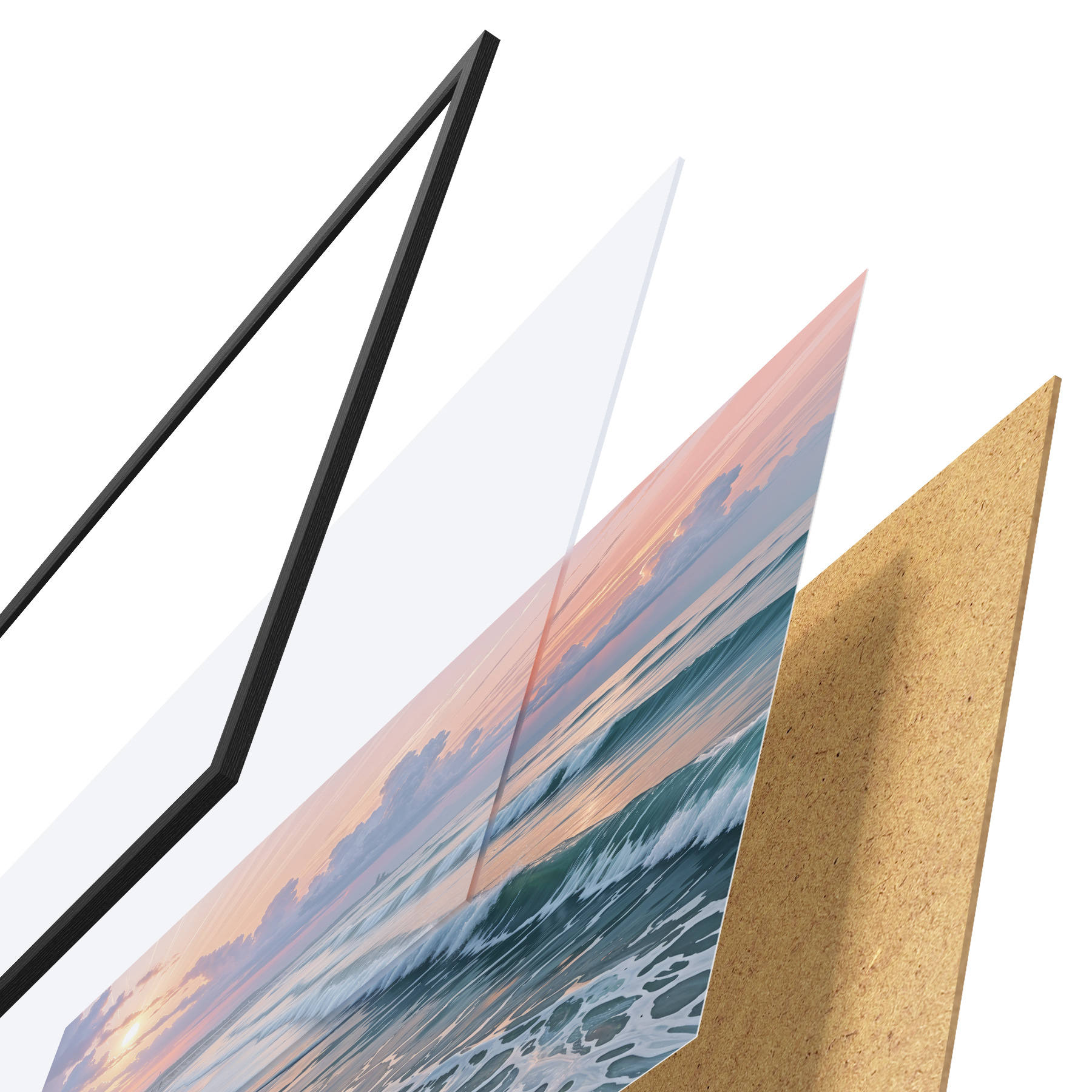 Plakāts sastāv no rāmja, pleksstikla, iespiestā attēla un skaidu plātnes pamatnes. Plakātu var uzreiz piekarināt pie sienas, pateicoties aizmugurē esošajiem stiprinājumiem.