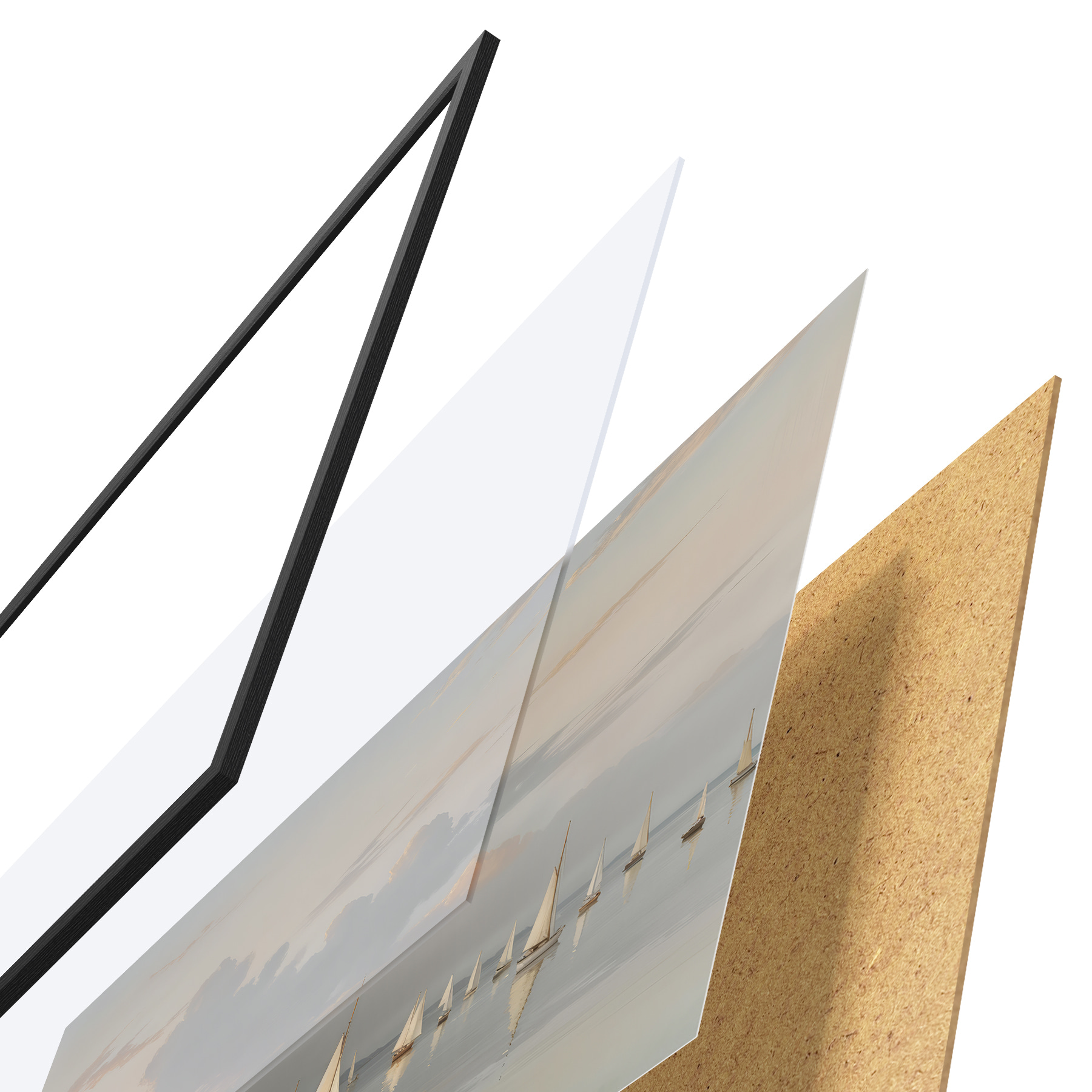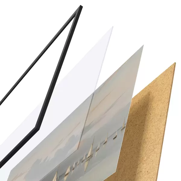 Plakāts sastāv no rāmja, pleksstikla, iespiestā attēla un skaidu plātnes pamatnes. Plakātu var uzreiz piekarināt pie sienas, pateicoties aizmugurē esošajiem stiprinājumiem.